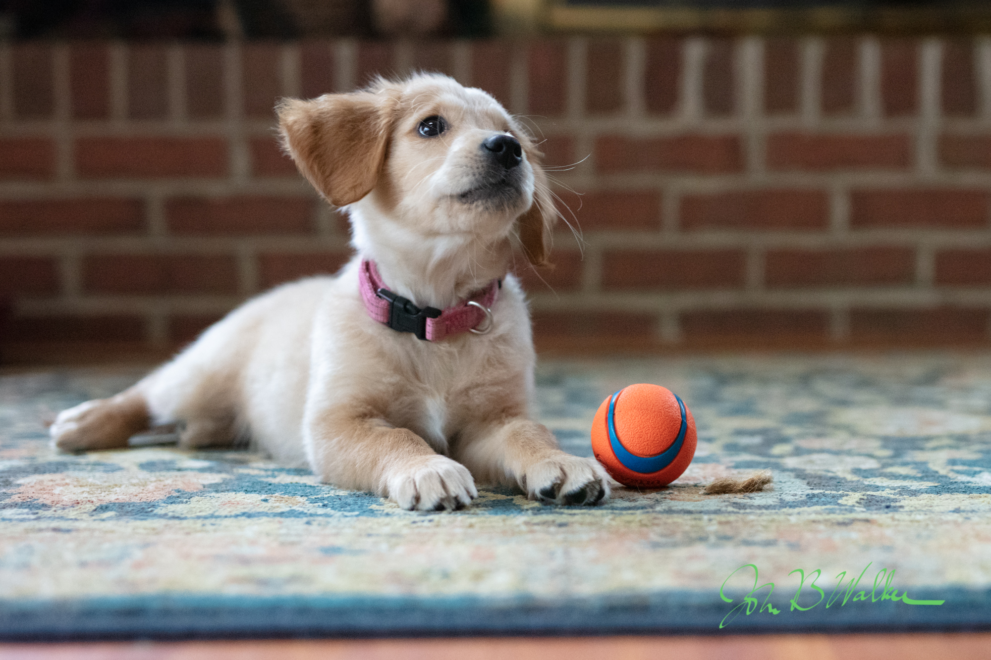 We named our puppy Pumpkin Pie Lollypop. I am 36 days or 10% complete with the year long challenge and I have results to show. I am want to show some of the Pumpkin Pie Lollypop having fun with her ball. I may take 60 pictures a day in this sequence because Pumpkin like most puppies is at an energy level that is a blur on most pictures. I need about an hour to do the shoot and at least that much to select and process the photos into the sequence. During my shoot I keep my down-select criteria in mind: clear image of puppy and ball, sharp focus on puppy eyes, catch light, whole puppy in the frame. I look for pictures where the relationship between Pumpkin and her ball is interesting and hope to catch some serendipitous moments and tell a story.