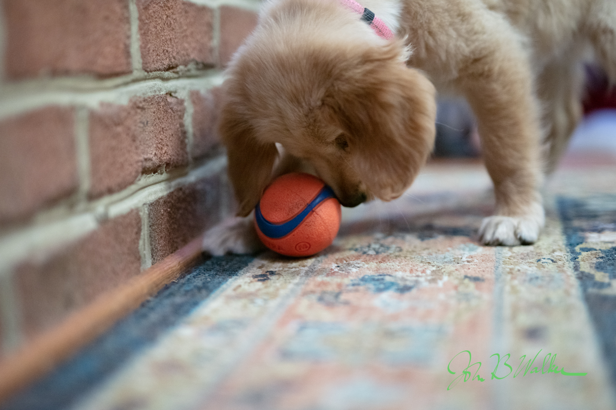 We named our puppy Pumpkin Pie Lollypop. I am 36 days or 10% complete with the year long challenge and I have results to show. I am want to show some of the Pumpkin Pie Lollypop having fun with her ball. I may take 60 pictures a day in this sequence because Pumpkin like most puppies is at an energy level that is a blur on most pictures. I need about an hour to do the shoot and at least that much to select and process the photos into the sequence. During my shoot I keep my down-select criteria in mind: clear image of puppy and ball, sharp focus on puppy eyes, catch light, whole puppy in the frame. I look for pictures where the relationship between Pumpkin and her ball is interesting and hope to catch some serendipitous moments and tell a story.